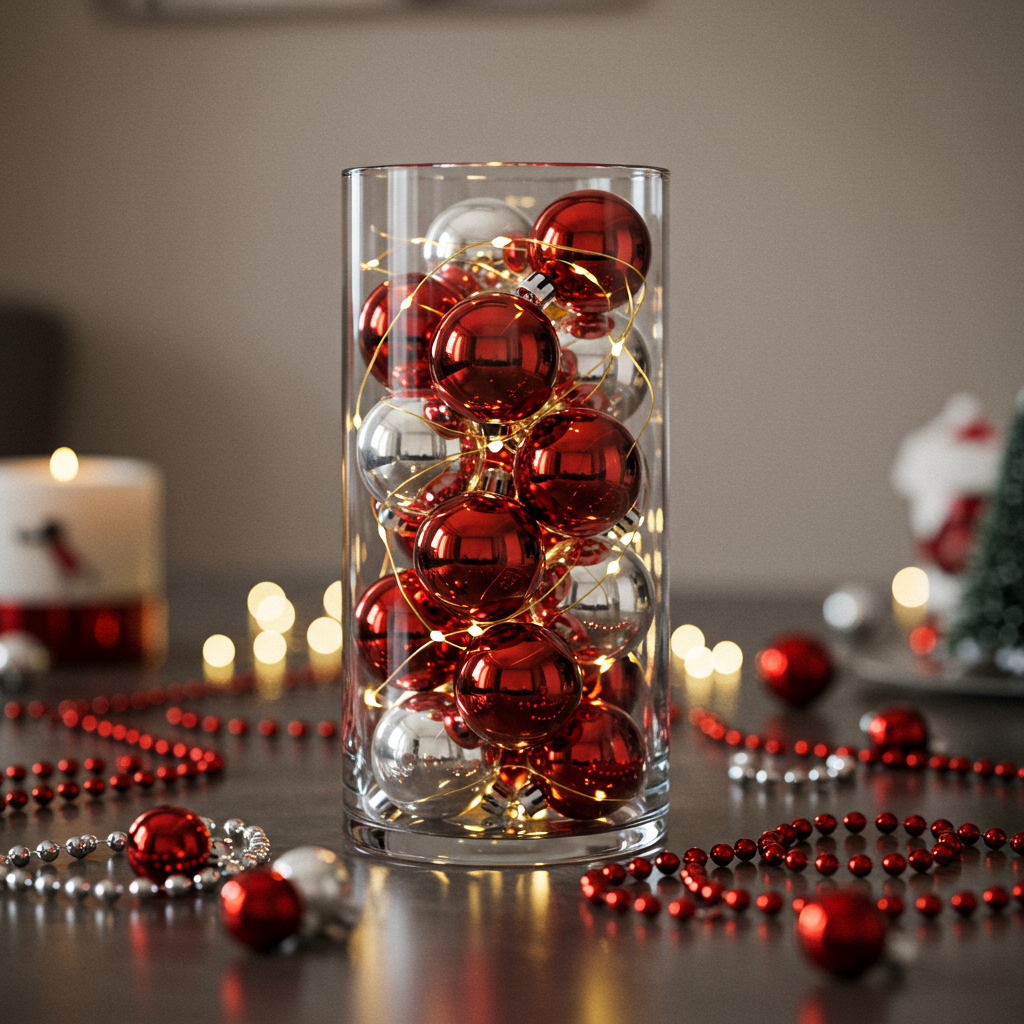 1. Place extra ornaments on the mantel, in a hurricane vase, or around a DIY wreath.