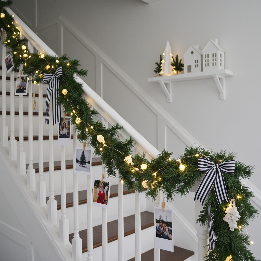 6. Christmas string lights add a touch of whimsy to any space. Add lights to the mantle, banister or anywhere to bring in a Christmas glow.